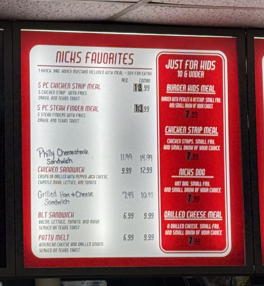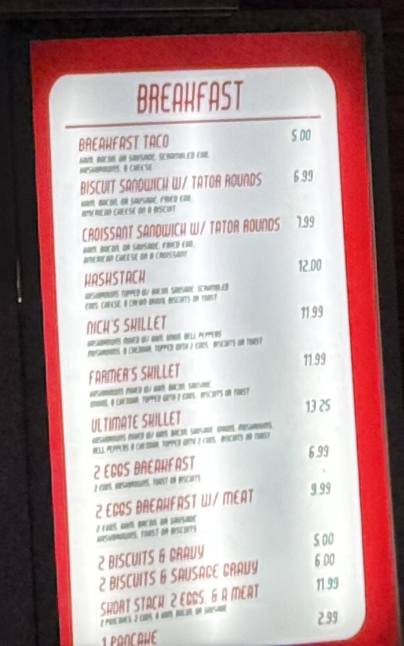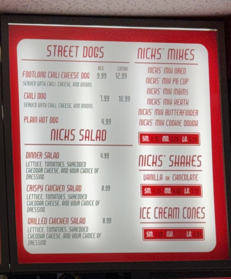 Nick’s Burger Menu