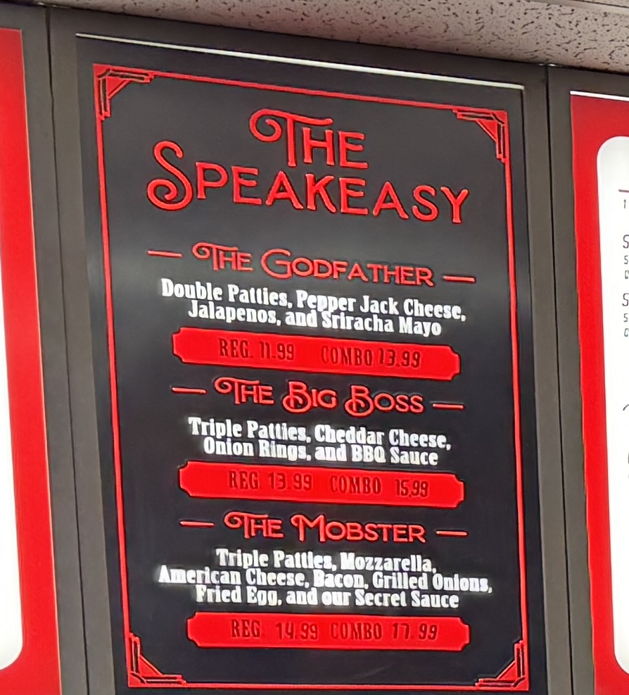 The core of the menu is built around thoughtfully prepared burgers like the Bacon Cheeseburger Combo served with crispy onion rings, the Triple Meat and Godfather Burgers, alongside options such as the Mushroom Swiss Burger. For sides, you’ll find comforting choices like sweet potato fries, tater tots, and chili cheese fries that pair naturally with the main dishes.